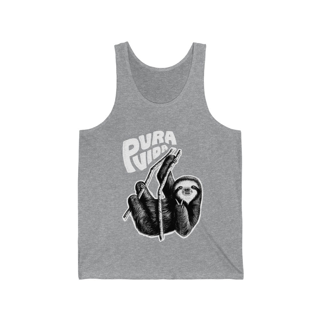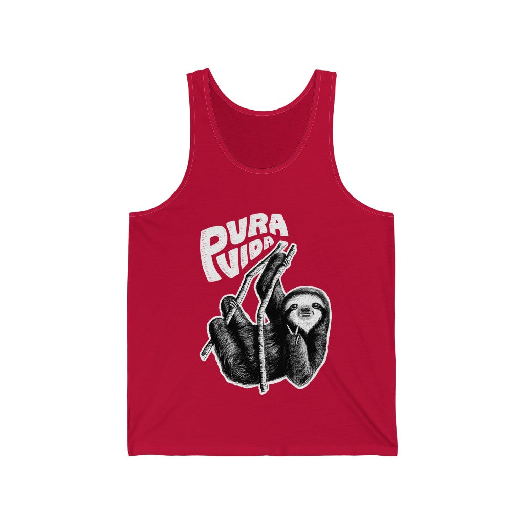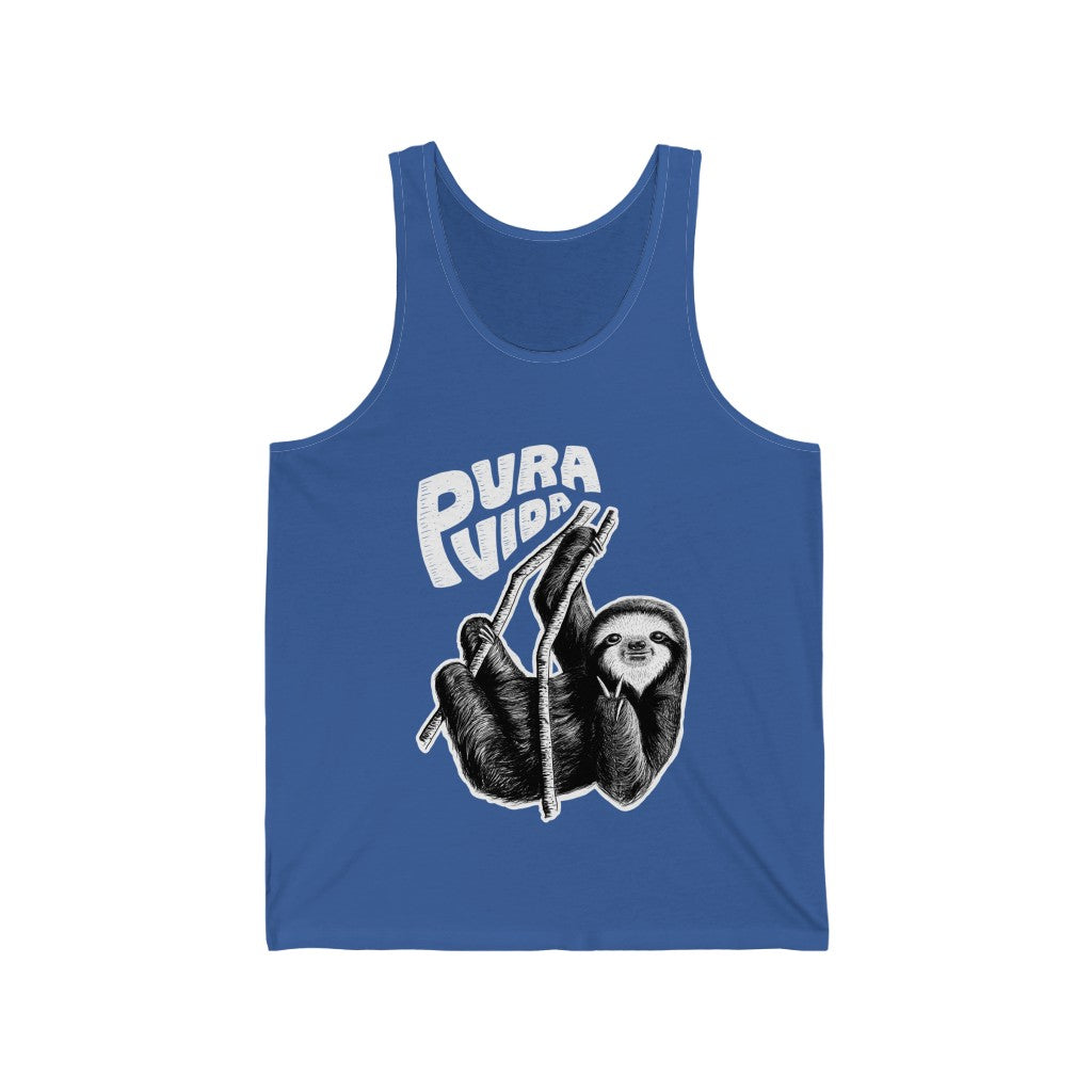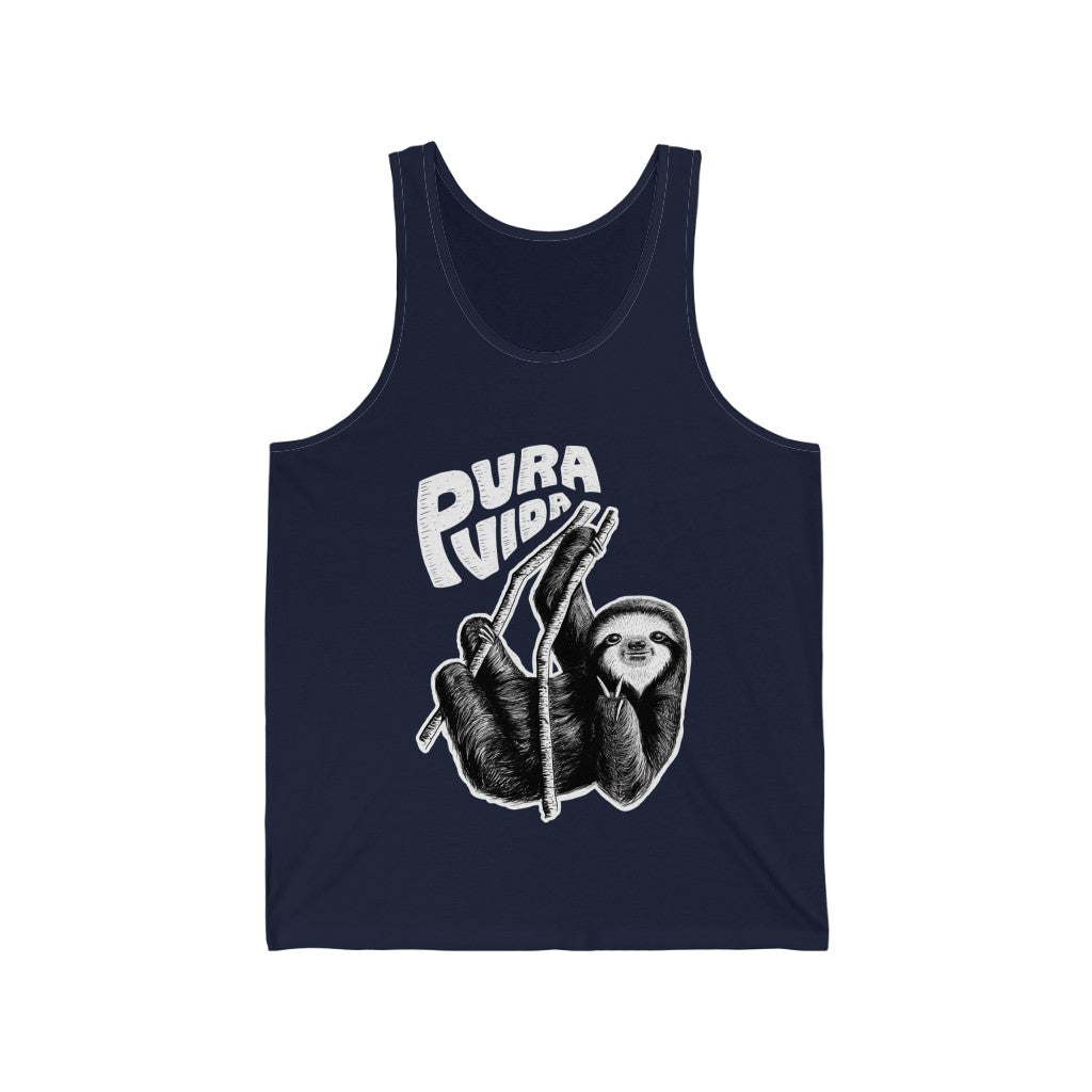 The Sloth has peace in his heart and Pura Vida on his mind.. He can be yours with this super soft Jersey tee. Available in a variety of colors and sizes so you can keep Costa Rica in your heart no matter where you roam.