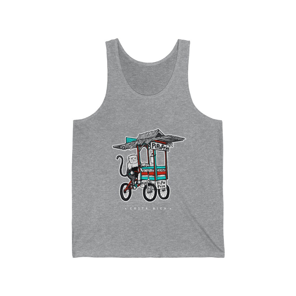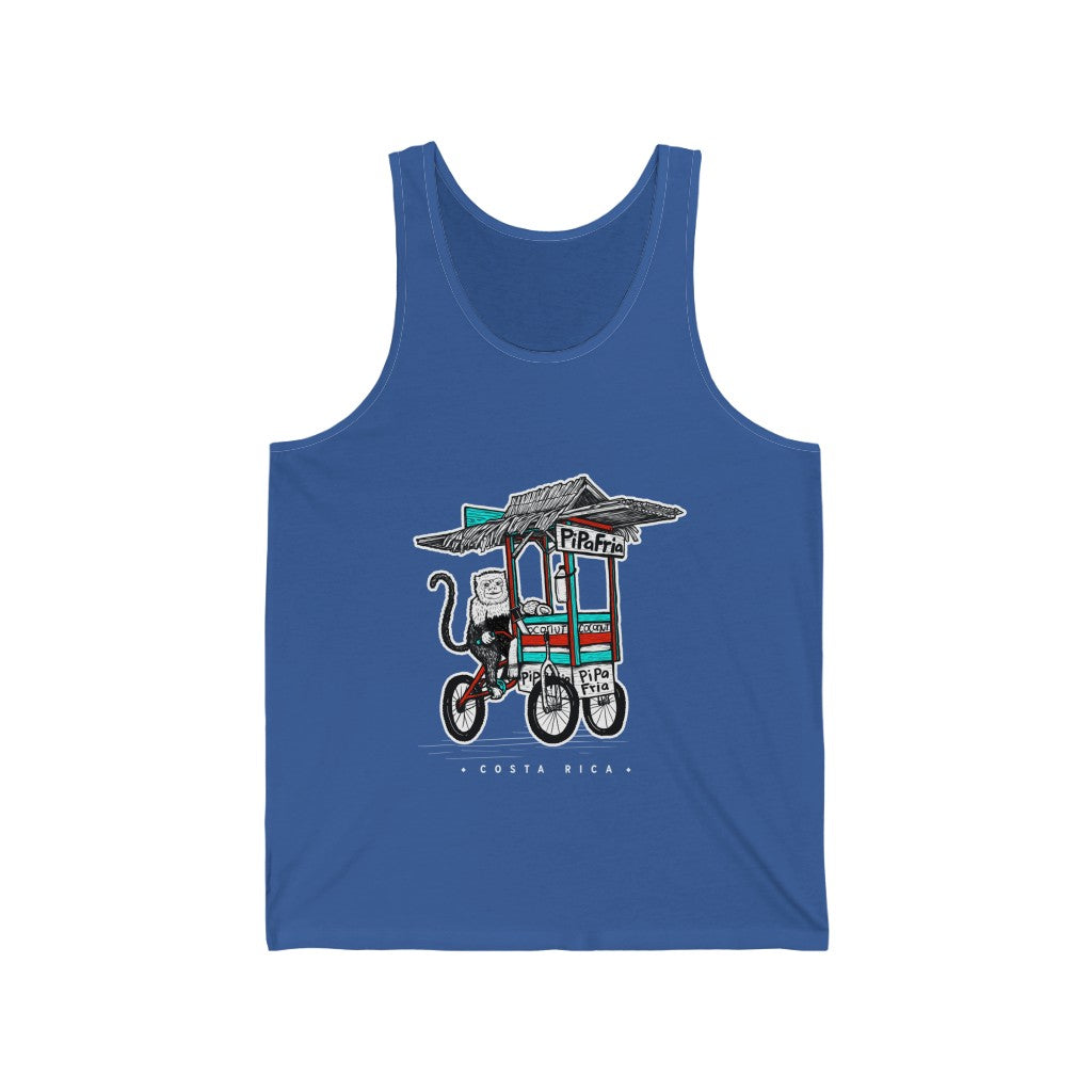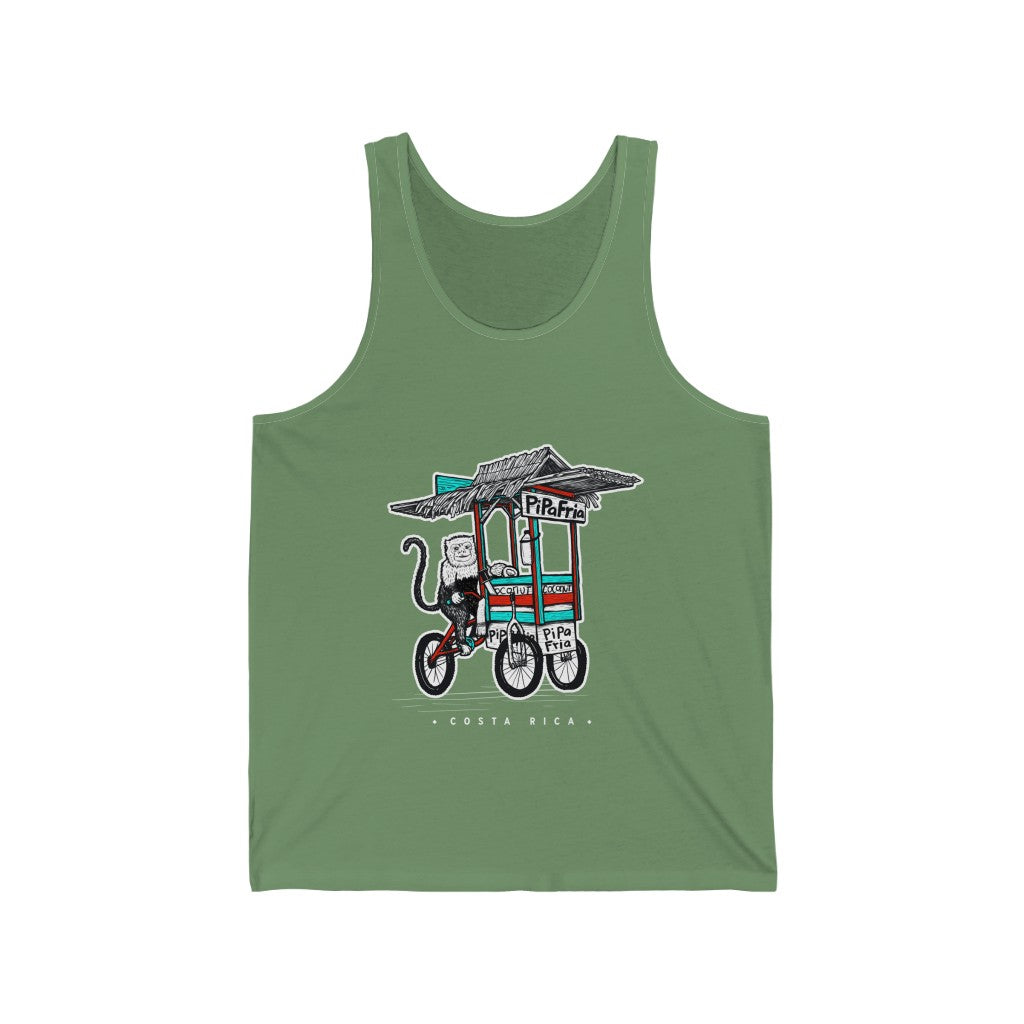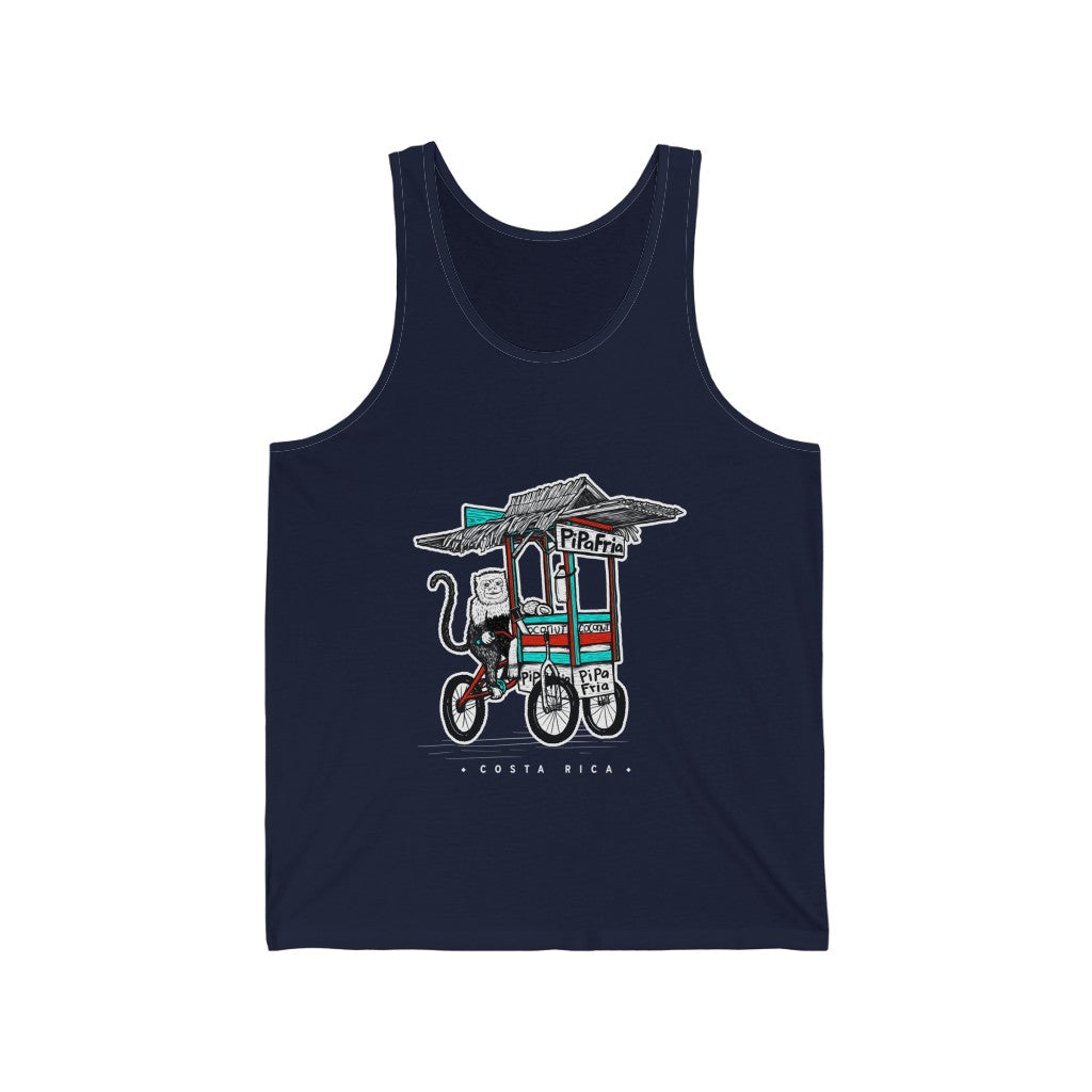 One of the benefits of living in Paradise is Pipa Frias (cold water coconuts) This cheeky lil monkey is pedaling around to keep you hydrated. Available in a variety of colors and sizes so you can keep stay in Paradise no matter where you roam.